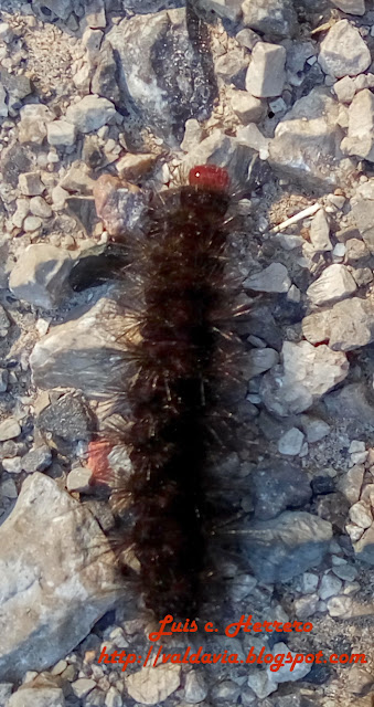 Las orugas se están mas quietas y es mas fácil fotografiarlas, aquí vemos una Melitaea cinxia